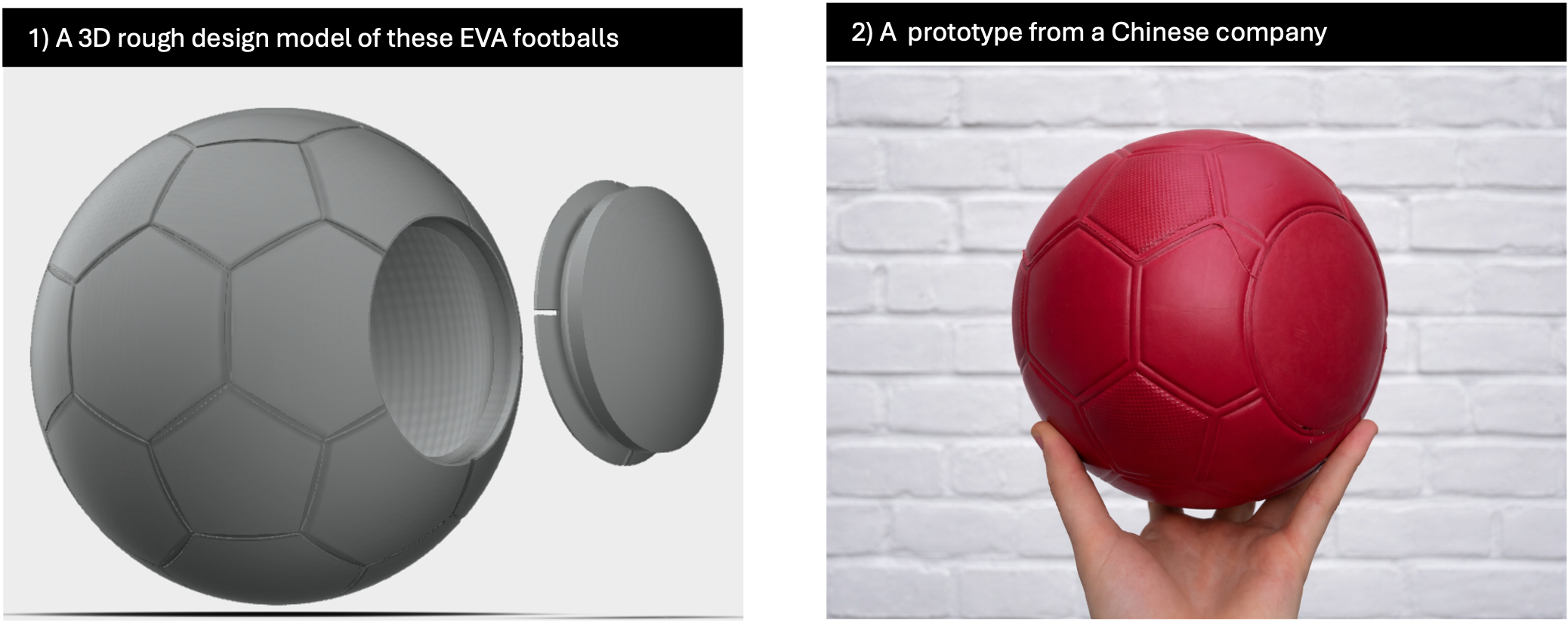 However, $75 is too expensive for Zambia, so I began searching for a more affordable way to make them. After researching the materials and the production process, I reached out to factories around the world that specialise in these foam-moulded products. Eventually, a company in China came back and claimed they had made a similar ball before. After months of emails that consisted of language barriers, confusion, drawings, and sales pitches, I got them to send me a prototype of their product.