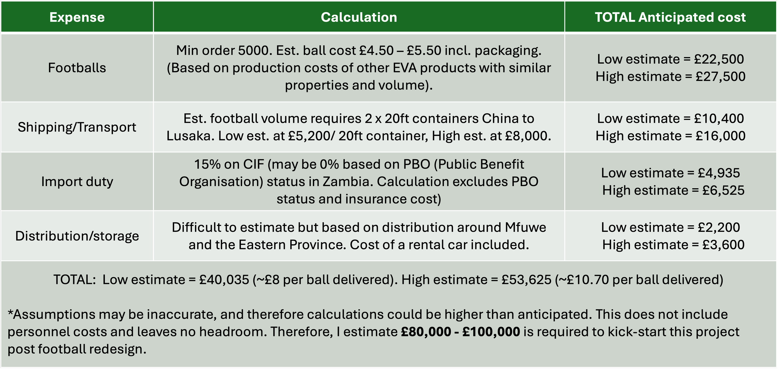 Distribution would start in and around the Mambwe District of Zambia’s Eastern Province as I have personal relationships and experience in this area. Local schools and football clubs would be given donations of footballs for immediate impact and maximum reach.